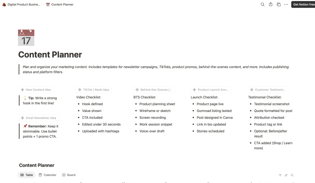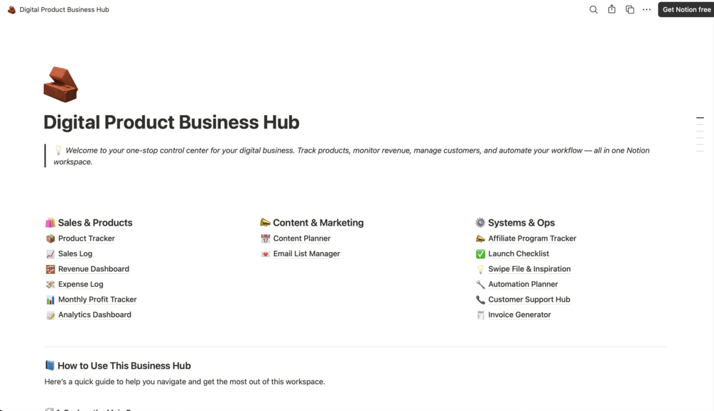 Creator Business Hub – Plan, Launch & Manage Digital Products in Notion