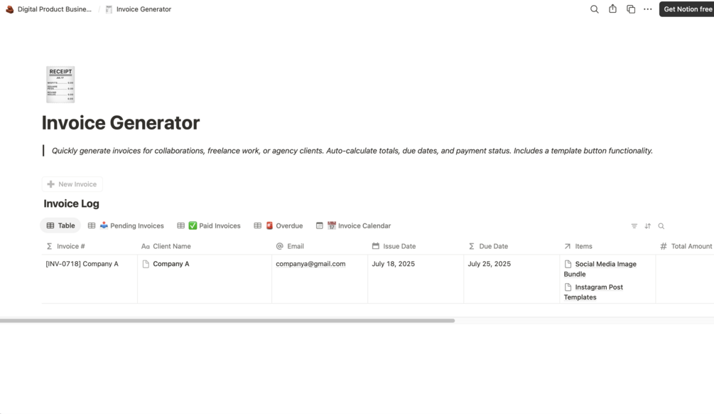 Once purchased, you’ll receive a link granting access to a copy of the Notion Template (as shown in the product images) for personal use. The template is fully customizable, allowing you to edit and personalize it to fit your needs and preferences.