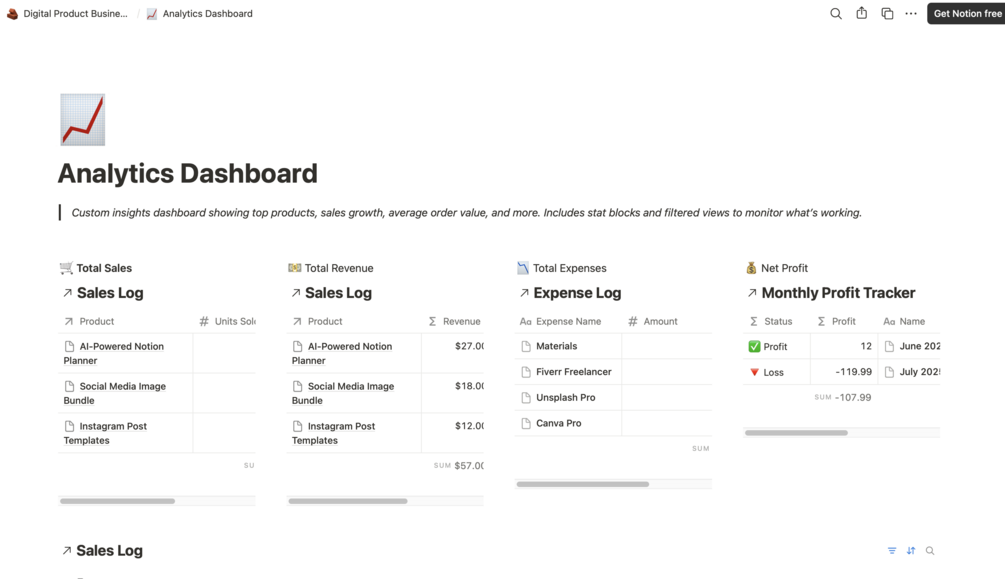 No more sticky notes, scattered files, or random spreadsheets. The Digital Product Business Hub is your all-in-one Notion dashboard for managing your entire digital product business.